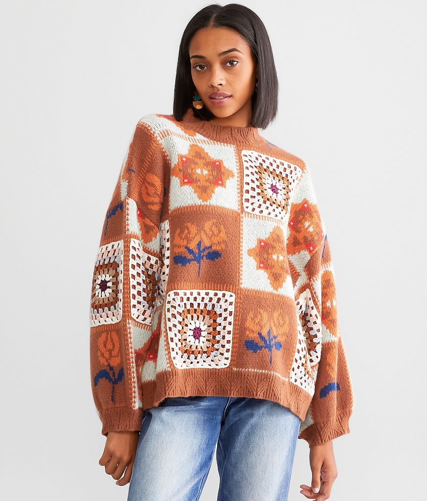 POL Pieced Crochet Sweater Women's Sweaters in Brick Multi Buckle